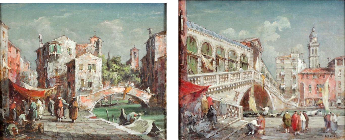 ZENO E. Chioggia 1880 - Milano 1956 Capriccio veneziano lotto di 2 olii su tela 26x31 cad. entrambi firmati in basso a destra