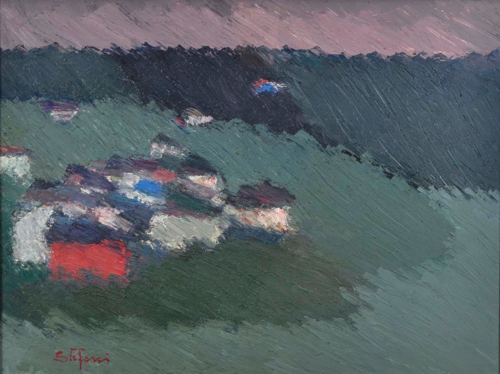 STEFANI OTTORINO Volpago (Tv) 1928 Paesaggio in verde 1982 olio su tavola...