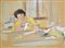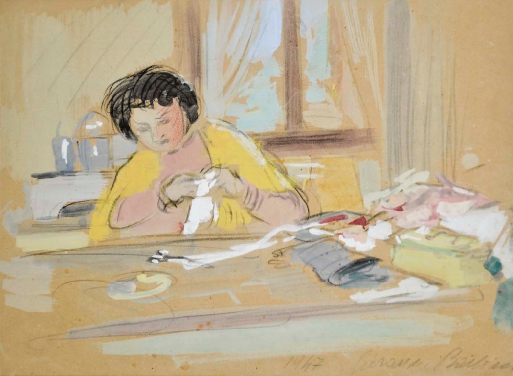 BARBISAN GIOVANNI Treviso 1914 - 1988 Donna che cuce 1947 tecnica mista su carta riportata su tavola 33x45 firma e data in basso a destra