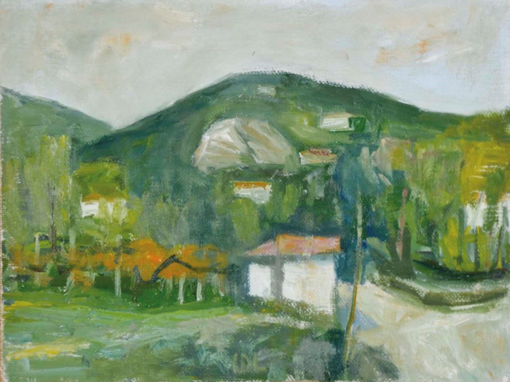 DALLA ZORZA CARLO Venezia 1903 - 1977 Teolo, la cava 1960 olio su cartone telato 15x20 siglato in basso al centro autentica della Galleria Ponte Rosso Milano nr. Arch. 1/8821 su foto
