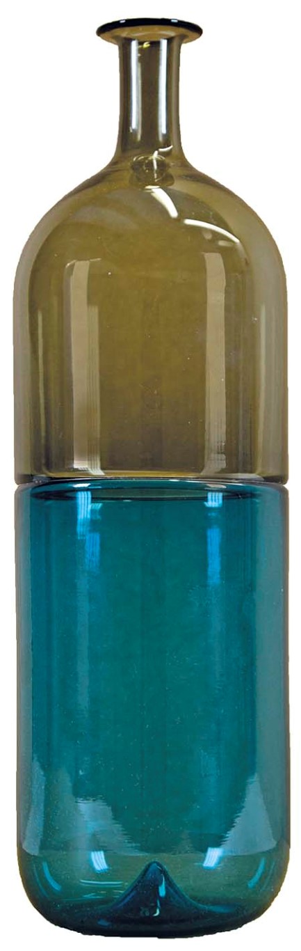 VENINI Disegno Tapio Wirkkala Bottiglia 1989 bottiglia in vetro ad incalmo nei toni dell'azzurrro e grigio h. 35 firma all'acido Venini T.W. 89