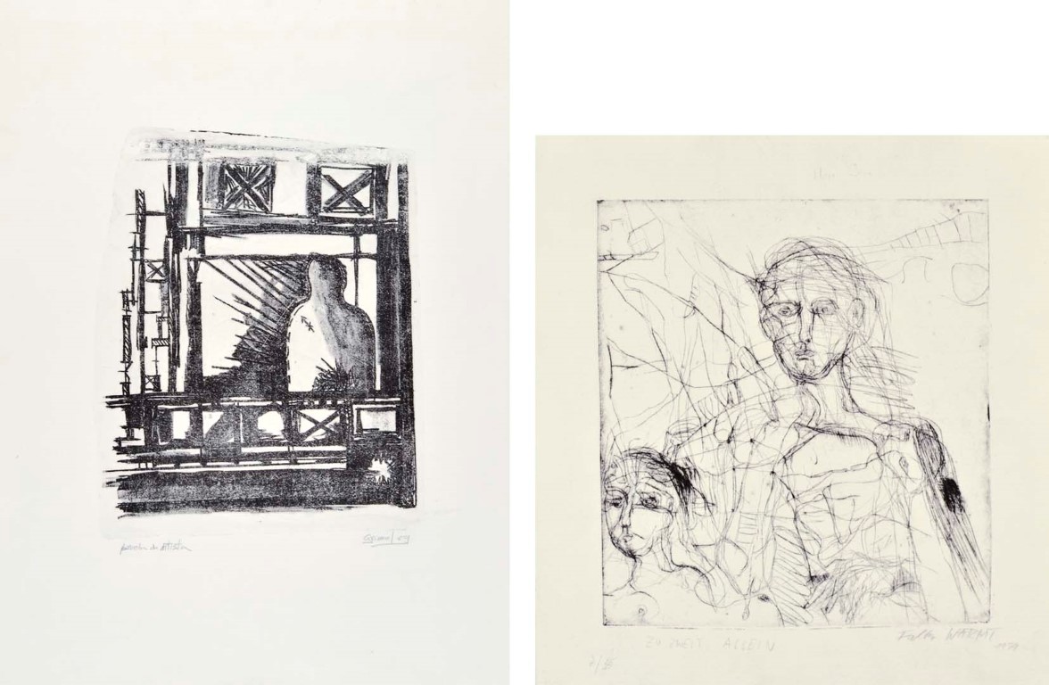 Falko Warmt: "Zu zweit allein" 1979 acquaforte es. 7/35 lcm. 25,5x23,5 (lastra) - 34x31,5 (foglio)