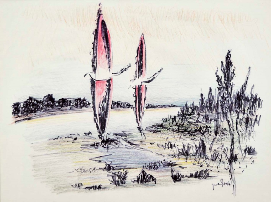 PADOVA GOLIARDO Casalmaggiore 1909 - 1979 Paesaggio del Po pastello e...