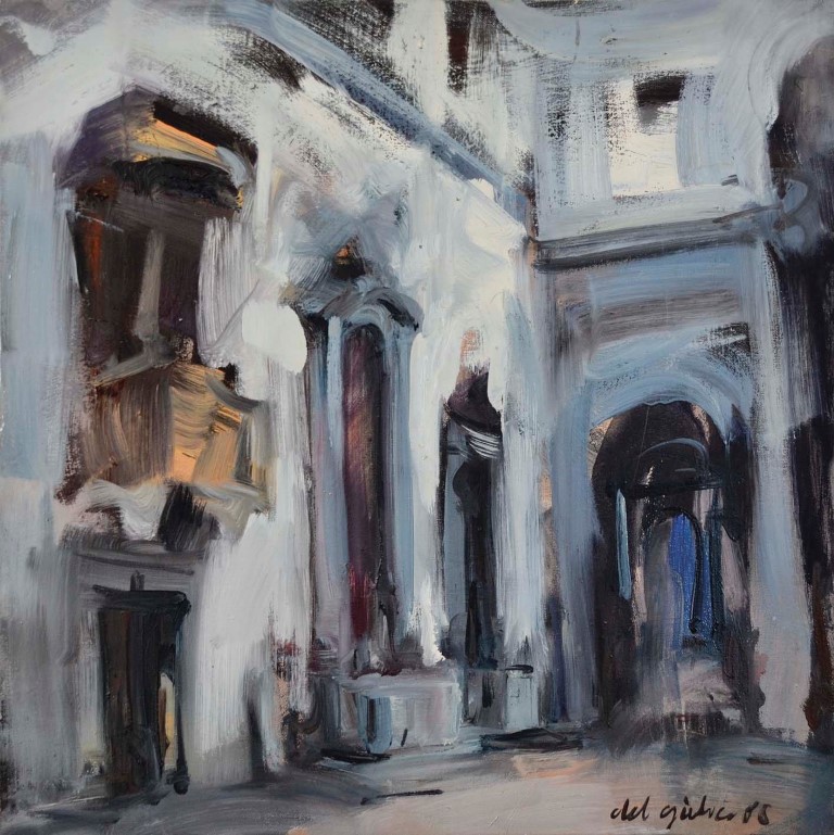 DEL GIUDICE PAOLO Treviso 1952 Interno di chiesa 1988 olio su tela 50x50...