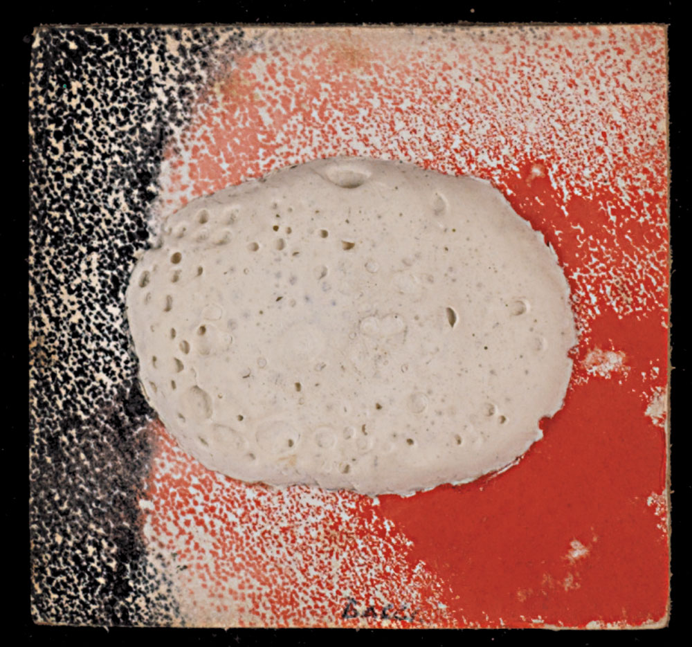 EDMONDO BACCI Venezia 1913 - Venezia 1979 B-58, 1958 tecnica mista e collage su cartoncino applicato su tavola cm. 8,5x9,5; firma in basso al centro, firma, titolo e anno al retro, già asta Skinner Boston.