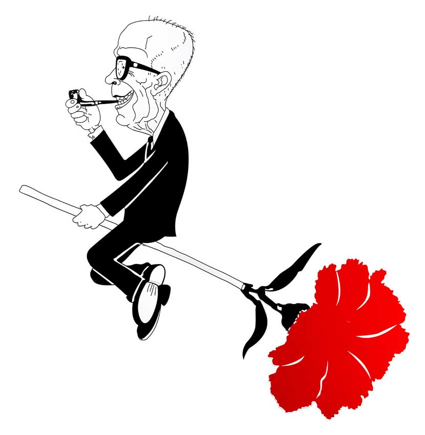 "Sandro Pertini eletto presidente vola su una scopa-garofano" sagoma a colori (h 120x160)