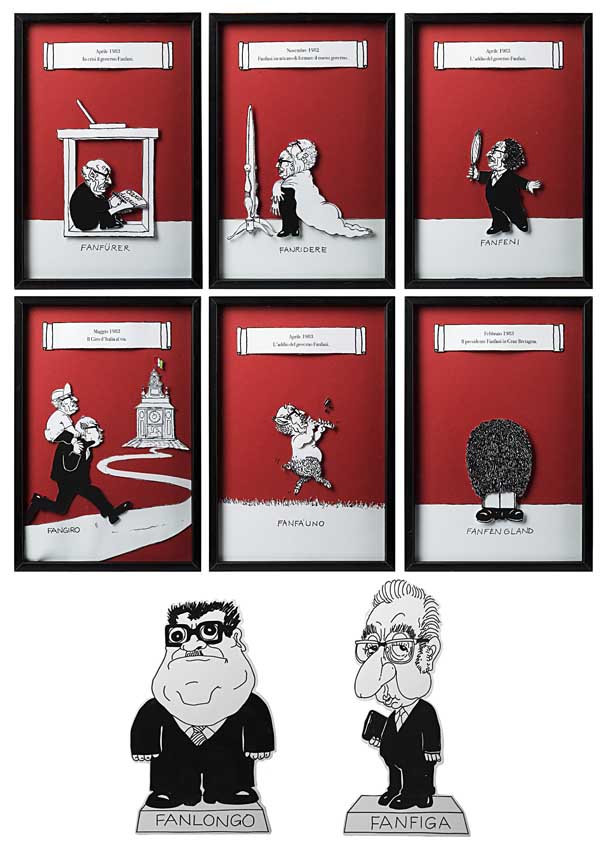 "Fan...fani" gruppo di due sagome e sei cartoncini in 3D a colori in cornici