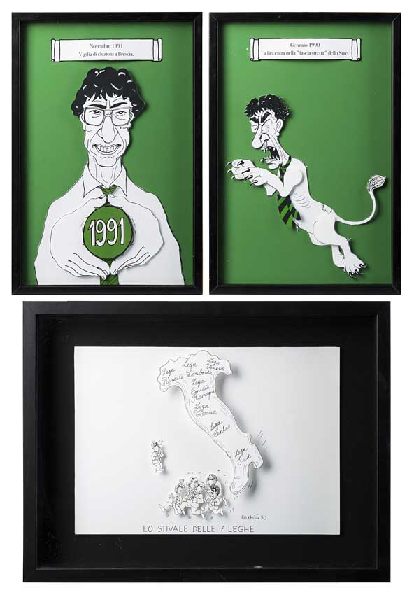 "L'Italia e le Leghe" tre cartoncini in 3D in cornice