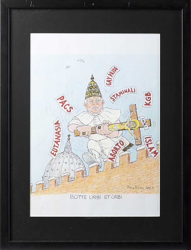 Originali "Papa Benedetto XVI: botte urbi et orbi" 2007 litografia con intervento a mano dell'artista a colori (cm 30x20)
