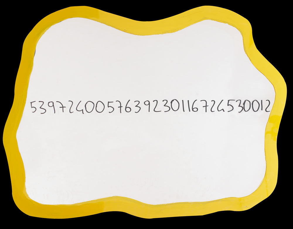 MICHELANGELO PISTOLETTO Biella (Vc) 25/06/1933 Frattali, 1999-2000 smalti su specchio sagomato cm. 69x88, firma, titolo e anno al retro, dichiarazione d'autenticità dell'artista e timbro dell'Associazione Culturale Arte Nova - Foriuso (PE) su foto, entro teca in plexiglass.