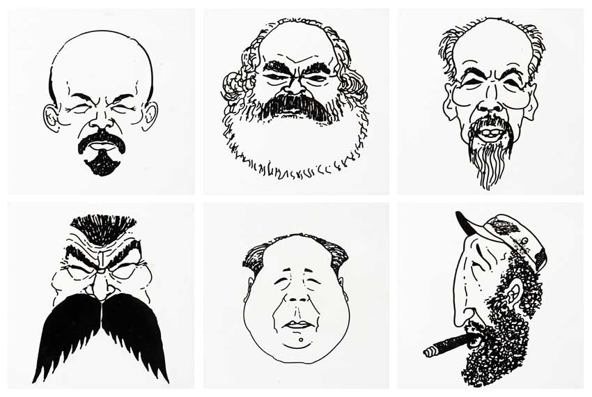 "Chi l'ha visto? I leader comunisti internazionali nella storia" installazione composta da sei pannelli in bianco e nero con fumetti