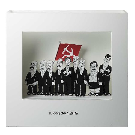 "Il governo D'Alema" personaggi vari, teatrino in carta contenuto in teca di...