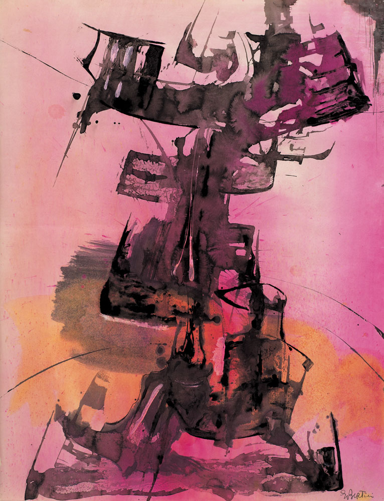 GIANNI BERTINI Pisa 31/07/1922 - Caen (Normandia) 08/07/2010 Imprevus de fusion, 1956 tecnica mista su carta cm. 65x50, firma in basso a destra ed in alto a destra, titolo, firma e anno al retro, opera registrata presso l'associazione Gianni Bertini a cura di Thierry Bertini come da dichiarazione su foto.