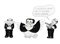 "Berlusconi e Prodi" tre sagome in bianco e nero con fumetto