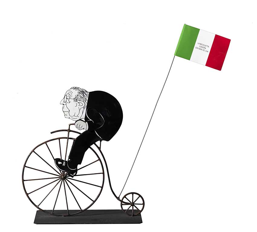 Giulio Andreotti "La bicicletta logora chi non ce l'ha" scultura in ferro e cartone (cm 73x60)