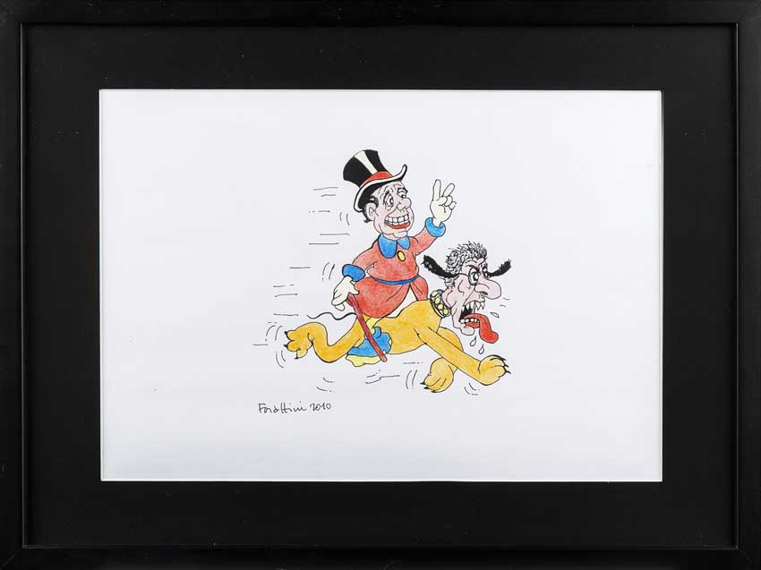 Originali "Vittoria di Silvio Berlusconi e di Umberto Bossi" 2010 litografia con intervento a mano dell'artista a colori (cm 20x30)