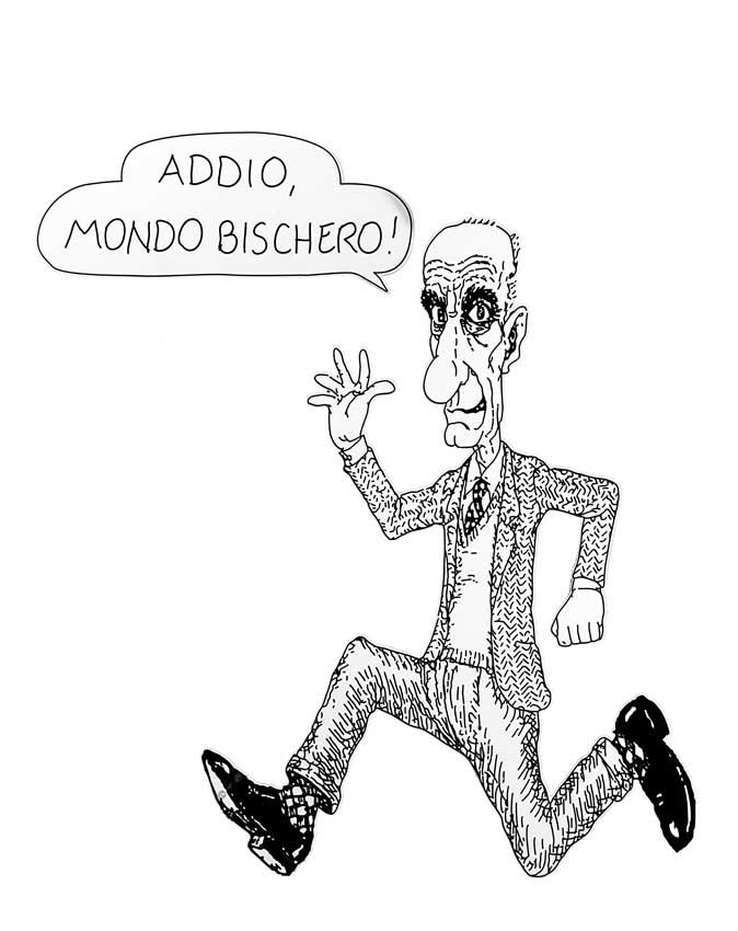 "Morte di Indro Montanelli: addio mondo bischero" sagoma con fumetto in bianco e nero (cm 100x50) (difetti)