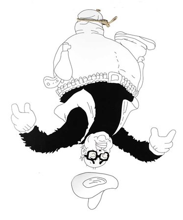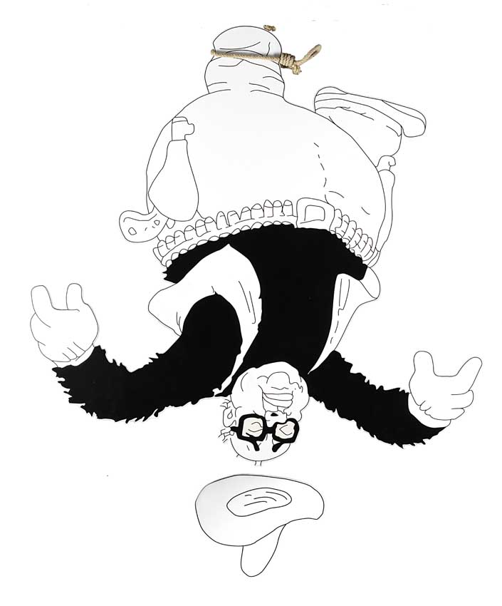 "Bettino Craxi gamba di legno", sagoma con corda in bianco e nero (cm 143x150)