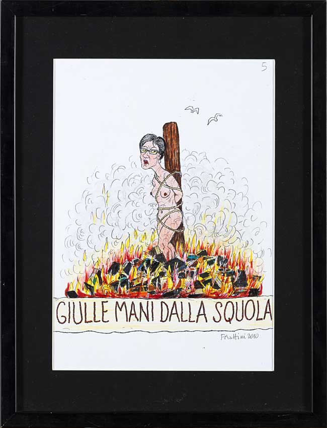 Originali "Mariastella Gelmini e la scuola" 2010 tecnica mista a colori su base litografica. In cornice (cm 30x20)