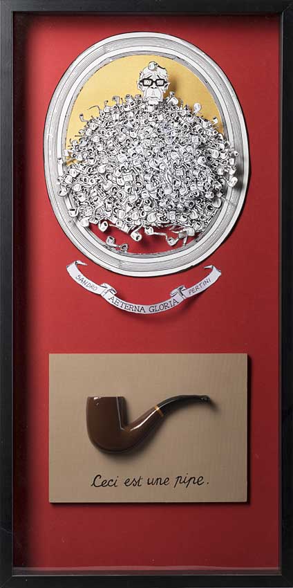 Reliquiario "Sandro Pertini" cartoncino in 3D a colori con pipa in legno...