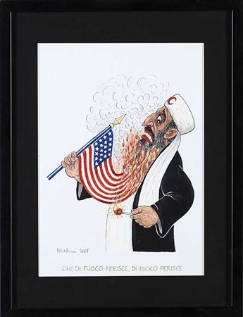 Originali "Osama Bin Laden" 2001. Pennarelli a colori su carta. In cornice (cm 30x20)