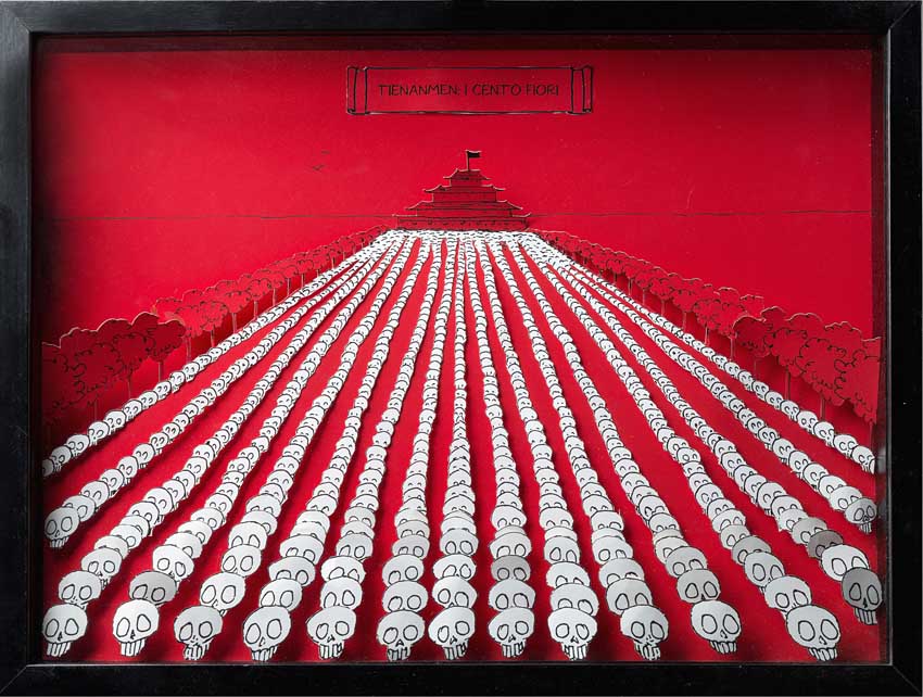 Cina "Tienanmen: i cento fiori" cartoncino in 3D a colori contenuto in teca (cm 30x40)