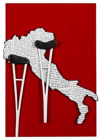 "Le Brigate Rosse colpiscono la stampa italiana" pannello in rilievo su fondo rosso (cm 50x33)