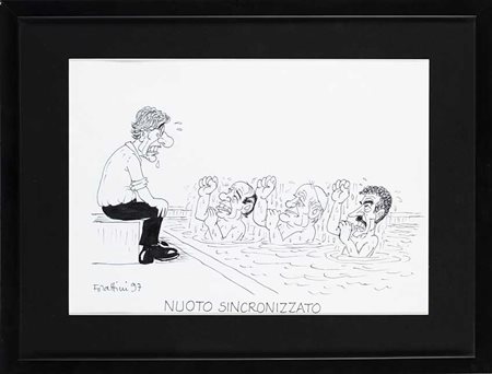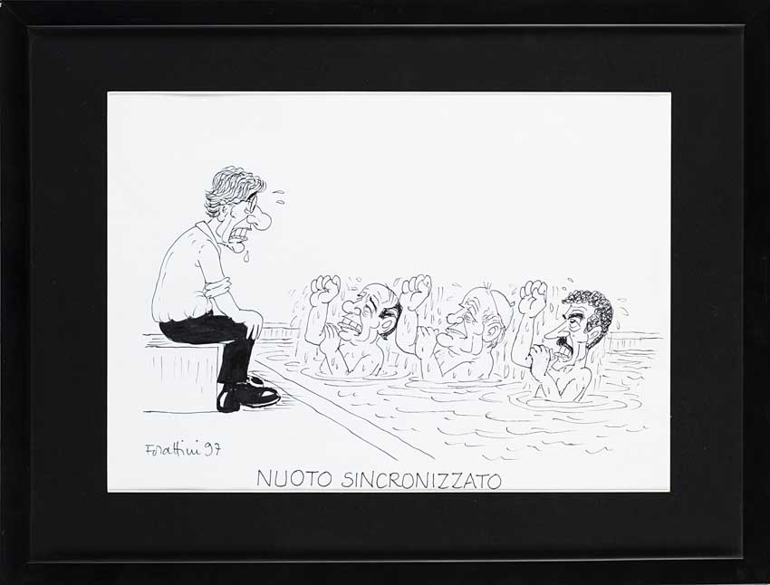 Originali "Nuoto sincronizzato" personaggi vari 1997, pennarello su carta in bianco e nero. In cornice (cm 30x20)
