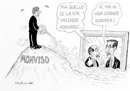 Originali "Il Monviso di Umberto Bossi con Berlusconi e Fini" pennarello su...