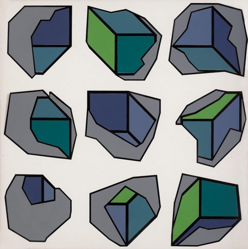 MANFREDO MASSIRONI Padova 1937 - Padova 01/12/2011 Collage, 1974 tecnica mista e collage su cartoncino cm. 50x50, firma, titolo e anno al retro, dichiarazione d'autenticità dell'artista su foto.