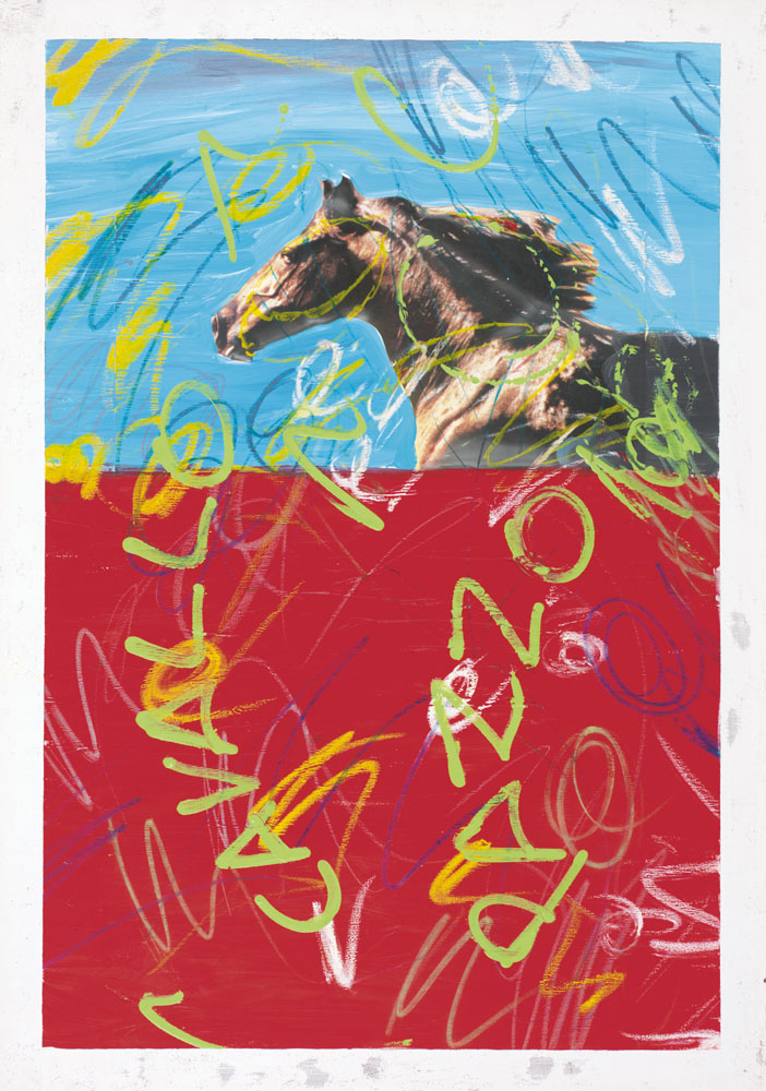 ENRICO MANERA Asmara (Etiopia) 04/04/1947 Cavallo pazzo acrilici, smalti e applicazione in pvc su tela cm. 100x70, firma e titolo al retro, dichiarazione d'autenticità dell'artista e archivio a cura della Meeting Art (VC) su foto.