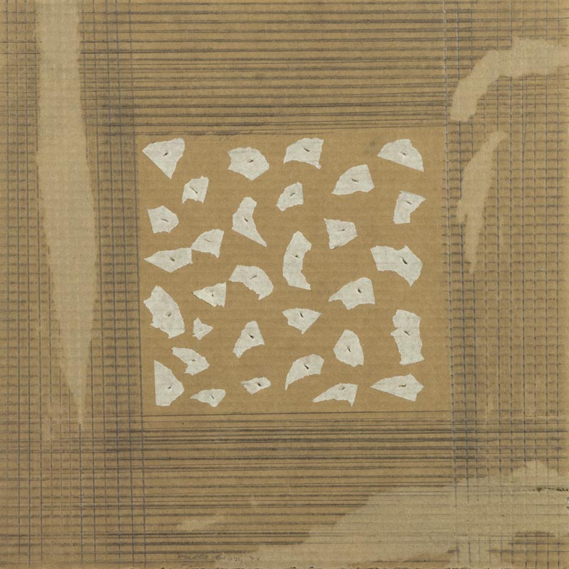 Paolo Masi, Firenze 1933 - , Senza titolo 1976, Collage, decollage, graffite su cartone ondulato, cm. 40x40, Firma e data in basso al centro; Sul verso: firma e data., , Autentica dell'Artista su foto.