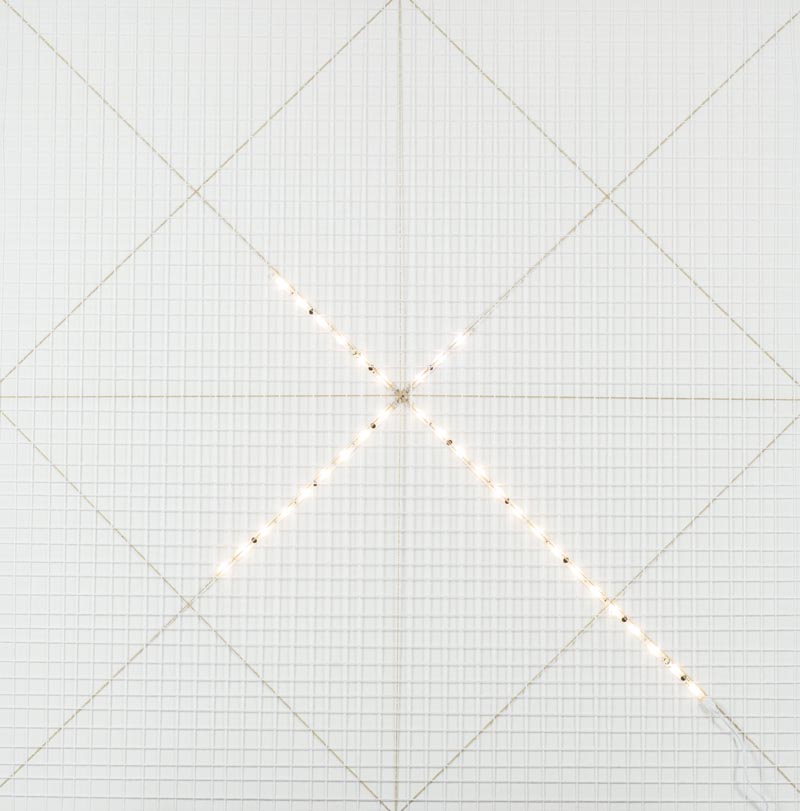Giorgia Zanuso, Savona 1985 - , Prigione dell'anima 2015, Assemblaggio di fili e led su tela, cm. 100x100, Sul verso: firma, data e titolo., , Autentica dell'Artista su foto.