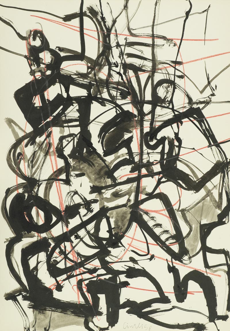Claudio Cintoli, Imola 1935 - Roma 1978, Ricordi di memoria 1958, Tecnica mista su cartoncino, cm. 70x50, Firma e data in basso al centro; Sul verso: Scritto di Autenticità del fratello Vittorio Cintoli., ,