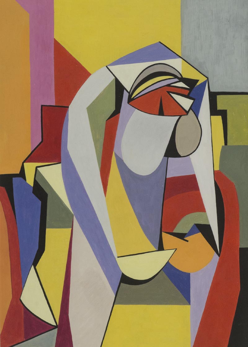 Gualtiero Nativi, Pistoia 1921 - Greve in Chianti (Fi) 1999, Donna seduta 1947, Olio su cartone intelato, cm. 50,5x36, Firmato in basso a sinistra; Sul verso: Archivio n° 4767A., , Autentica dell'Archivio Gaultiero Nativi su foto con timbro a secco, firma "Berto Nativi" e Archivio n° 4767A.