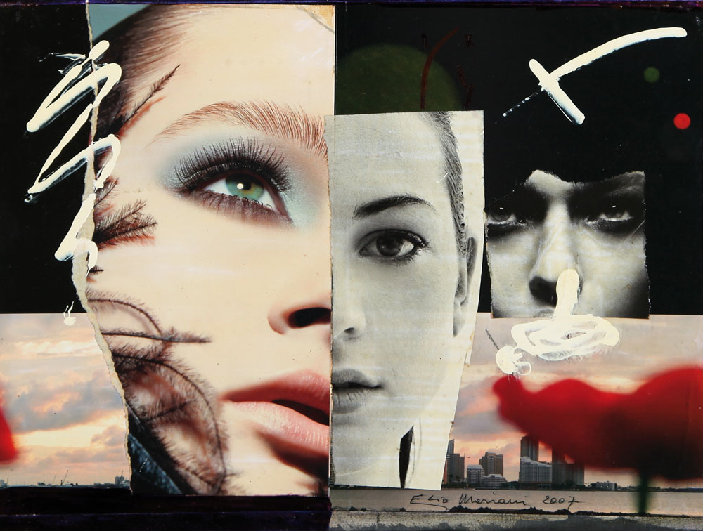 ELIO MARIANI Milano 1943  Senza titolo, 2007 mec-art gest su tela (tecnica mista e collage) cm. 30x40, firma e anno in basso a destra, dichiarazione d'autenticità dell'artista su foto.