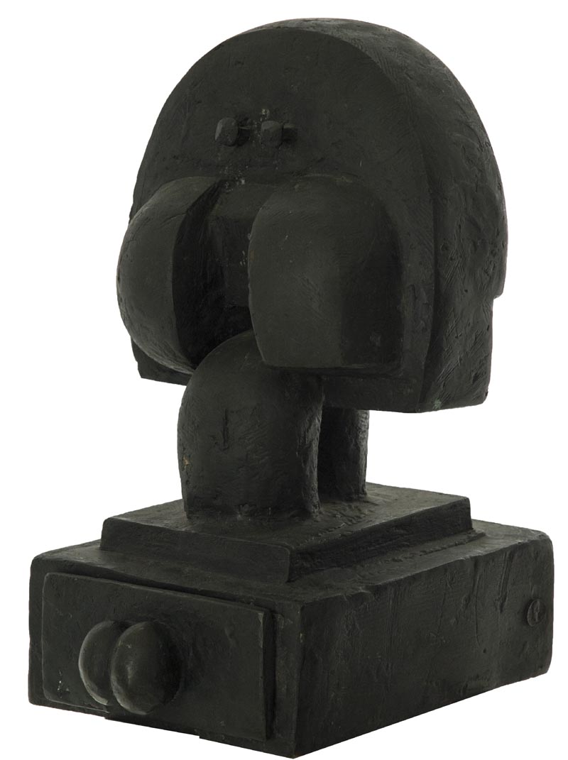 Pietro Cascella, Pescara 1921 - , Senza titolo , Scultura in bronzo, cm. 51x45x27, con cassetto estraibile di cm. 31,5 contenente incisa una prosa di Raffaele Carrieri., Sul lato: punzone dell'Artista., , Autentica del figlio Tommaso Cascella su foto.
