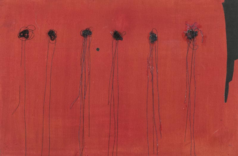 Achille Pace, Termoli (Cb) 1923 - , Sei personaggi 2003, Olio e fili su tela,...