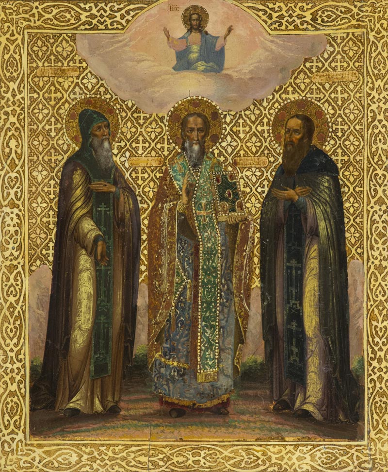 Icona Russia metà '800, - , I Dottori della Chiesa - Basilio Magno,Gregorio...