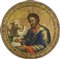 Icona Russia centrale, seconda metà '800, - , Evangelista Luca , Tavola, gesso, oro in foglia, tempera all'uovo, crisografia diametro cm. 32,5. , , Esposizione: Icone Russe, Museo delle Icone Russe "F. Bigazzi", Peccioli, Pisa per l'Arte La Cultura e la Solidarietà, dalla collezione di Margherita Maka in collaborazione con Antichità Retrò, 2006, pubblicato sul catalogo della mostra.,