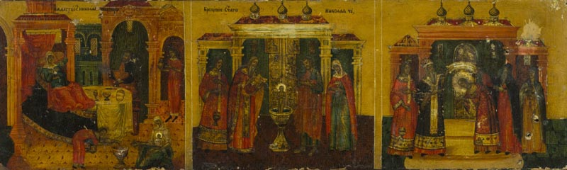 Icona Russa seconda metà '700, - , Tre scene delle vita di San Nicola...