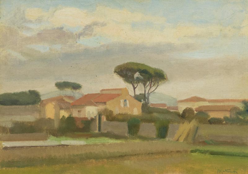 Ferruccio Mataresi, Livorno 1928 - 2009, Paesaggio , Olio su cartone telato, cm. 25x35, Firmato in basso a destra., ,