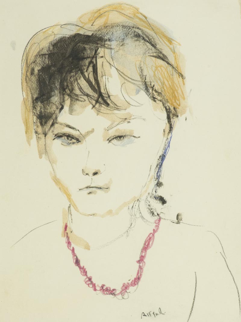 Lot 443 | Ugo Attardi, Sori (Ge) 1923 - Roma 2006, Volto , Tecnica mista su carta, cm....