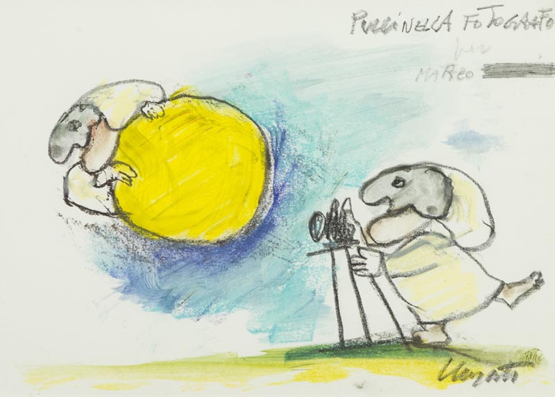 Emanuele Luzzati, Genova 1921 - 2007, Pulcinella fotografo , Tecnica mista su...