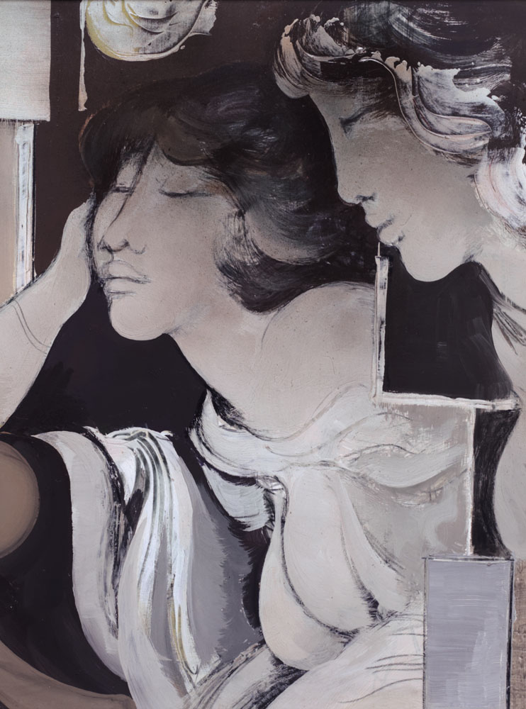 MARIO BIONDA Torino 1913 - Penango (AT) 1985 Figure polimaterico su...
