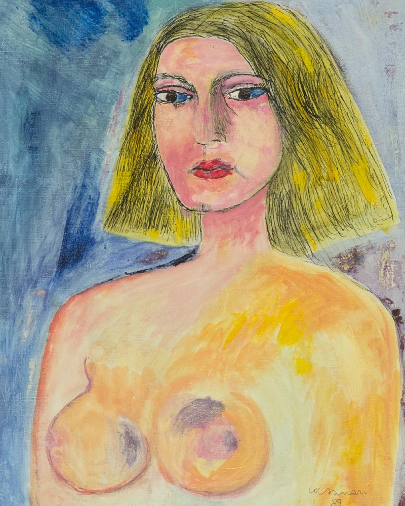 Bruno Cassinari, Piacenza 1912 - Milano 1992, Figura 1989, Olio e tecnica mista su tela, cm. 50x40, Firma e data in basso a destra; Sul verso: firma, data e titolo; Timbro: "Galleria d'Arte Cafiso", Milano., ,