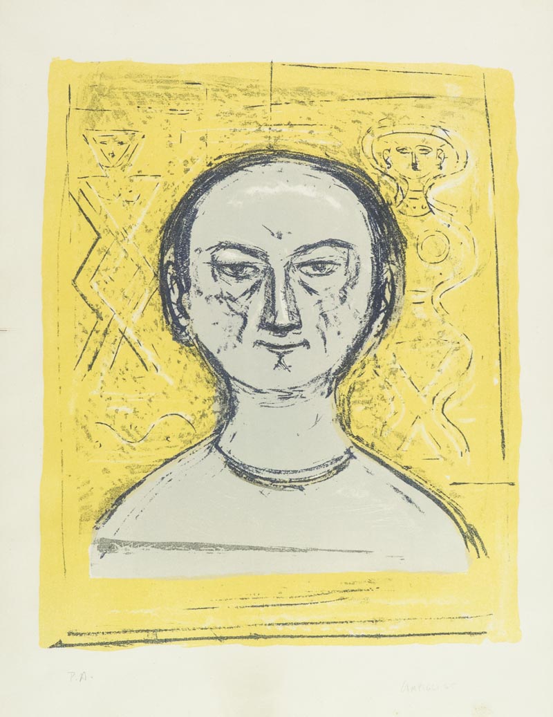 Massimo Campigli, Berlino 1895 - Saint Tropez 1971, Autoritratto 1965, Litografia su carta, cm. 65x51, es. P.A., Firma e data in basso a destra., Bibliografia: Francesco Meloni, Luigi Tavola "Campigli, Catalogo ragionato dell'Opera Grafica, Litografie e incisioni, 1930 - 1969", edizioni Graphis arte, pag. 133, n° 159.,