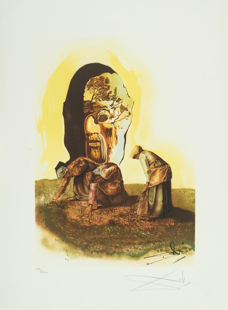 Salvador Dalì, Figuera 1904 - 1989, Senza titolo , Litografia su cartoncino, cm. 65x50, es. 278/300, Firma in basso a destra, tiratura in basso a sinistra; Sul verso: Timbro "Antoine Genna", Parigi., ,