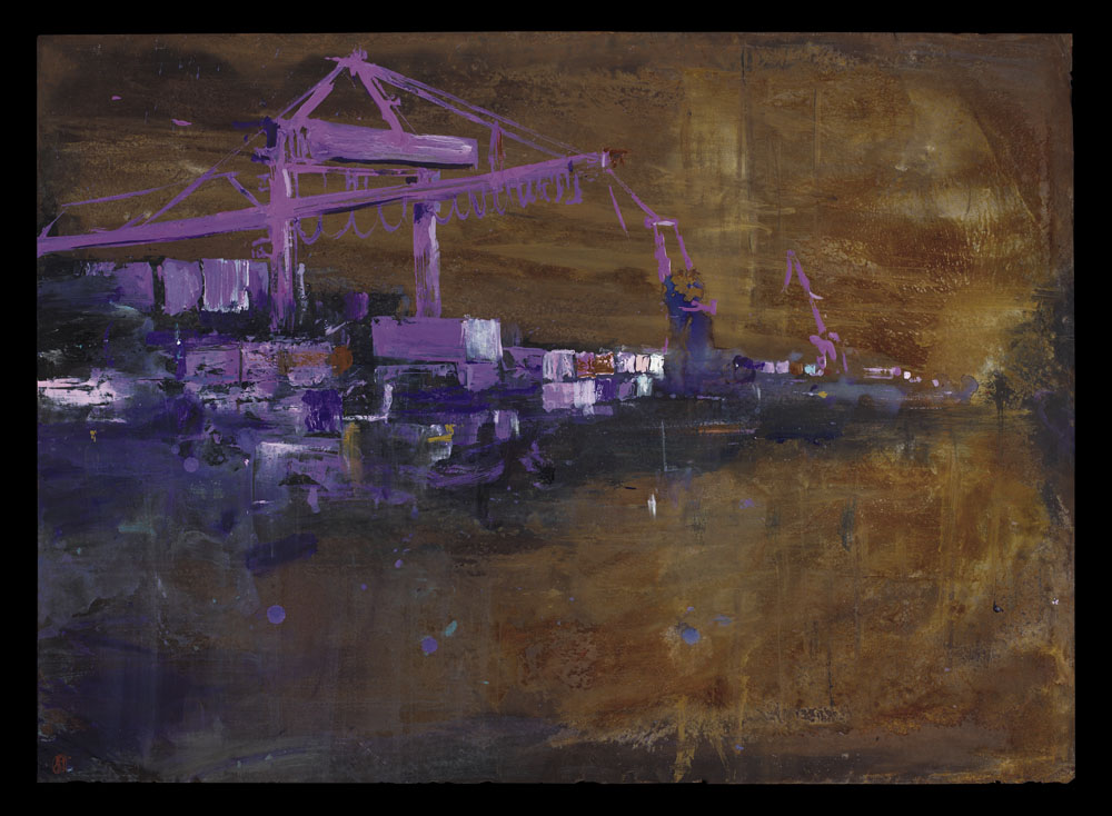ALESSANDRO BUSCI Milano 1971 La Spezia, notte, 2010 smalto su ferro cm. 51x71, sigla in basso a sinistra, timbro della Italian Factory al retro, dichiarazione d'autenticità dell'artista e timbro della Italian Factory su foto, pubblicato sul catalogo Bb Busci Biennale, Maretti Editore, 54 Esposizione Internazionale d'Arte La Biennale di Venezia, Padiglione della Repubblica di Cuba, Isola di San Servolo e Caserma Cornoldi, Riva degli Schiavoni 4 giugno, 27 novembre 2011, pagina 158.