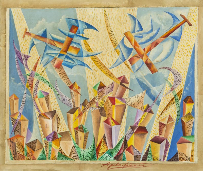 Agibeci Futurista, ROMA 1898 - 1991, Spazio Aereo Futurista , Tecnica mista e...